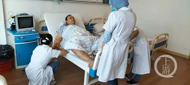 2月11日,他成功获救时,全身极度浮肿,血管萎缩严重,濒临死亡。