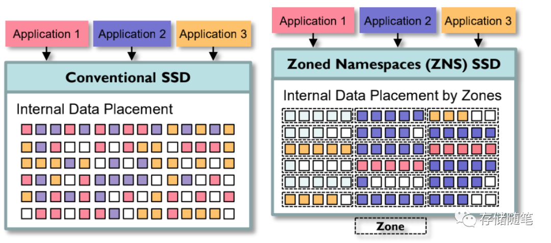 ZNS出现的背景是什么?ZNS SSD的原理是把namespace空间划分多个zone空间,zone空间内部执行顺序读写。