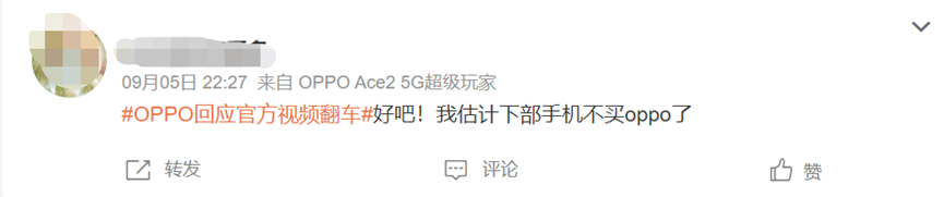 只是截止目前(9月6日12时),OPPO官方仍未就此事致歉,所谓的积极处理是如何解决、该事件始作俑者如何等,也仍未给出一个解释。