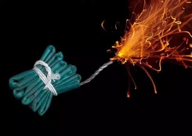 先来看看化学爆炸:以传统的黑火药为例,硝酸钾、硫磺、炭粉按照一定比例混合而成。当接触到火源时,硫磺、炭粉被点燃、迅速燃烧促使硝酸钾分解出氧气;