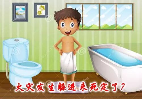 能不能躲,跟你家的卫生间的具体情况有关:有的有窗户、有的没有窗户;有的是塑料门,有的是木门甚至铝合金门;如果是木质门、金属门,又有窗户通风,为什么不可躲?难道你认为满是可燃物的卧室,比有水的卫生间还安全吗?请记住一句话:应急避险、环境万变、灵活应对、法无定法!