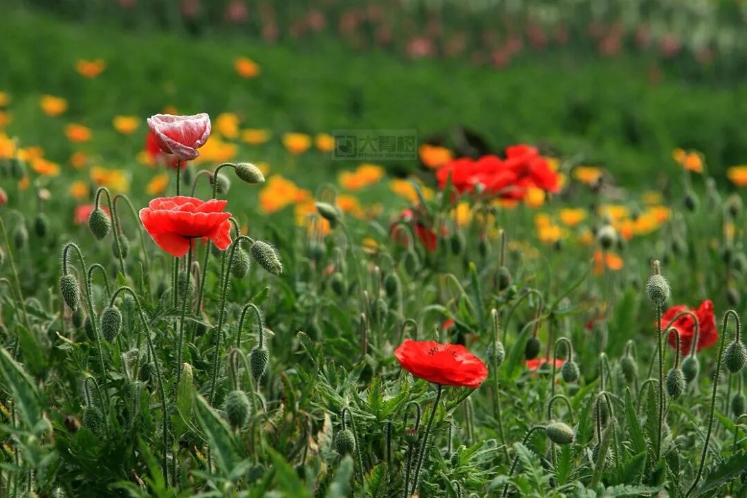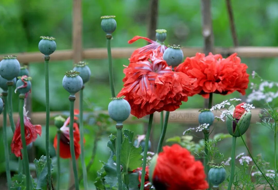 虞美人的花瓣更具绢绸感,一副小家碧玉的仪态;相比之下,野罂粟更像农家姑娘。来,合个影就能看出气质的差异了: