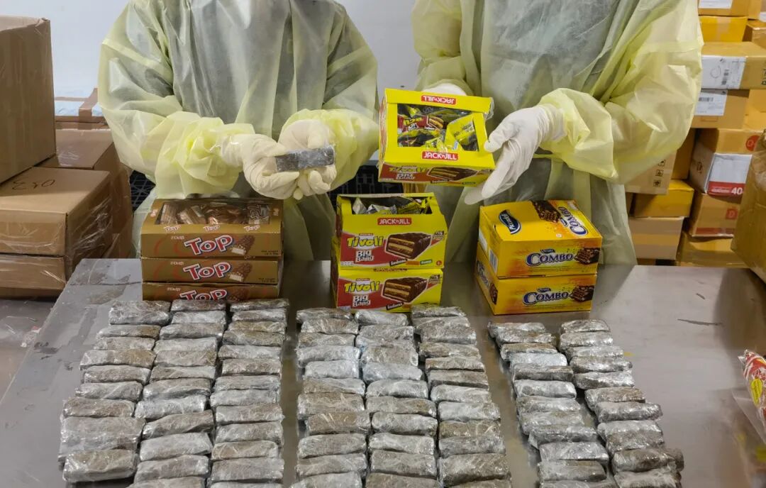 近日,长沙黄花机场海关对一票申报为“巧克力威化涂层”的进境快件进行机检查验时,在包裹内查获封装于各独立威化饼干包装袋中的大麻230克。另从其他申报为“巧克力、儿童早餐谷物”的快件中查获藏匿大麻的物品94件、共计2200克。经现场检测确认,两票快件中共藏匿大麻2.43千克。
