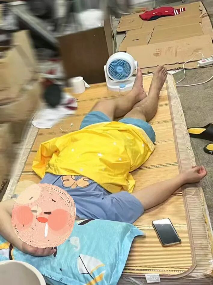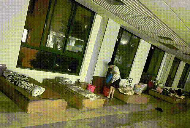 为了确保食堂正常供餐,师傅们不分昼夜在食堂里忙碌,为同学们准备一日三餐,他们甚至没有时间返回宿舍休息,只能在食堂的空地铺上纸皮席地而卧,拼几张椅子、堆几个物资箱搭个简易的床……经常是简单打个盹后又干劲满满地投入到第二天的工作中去。