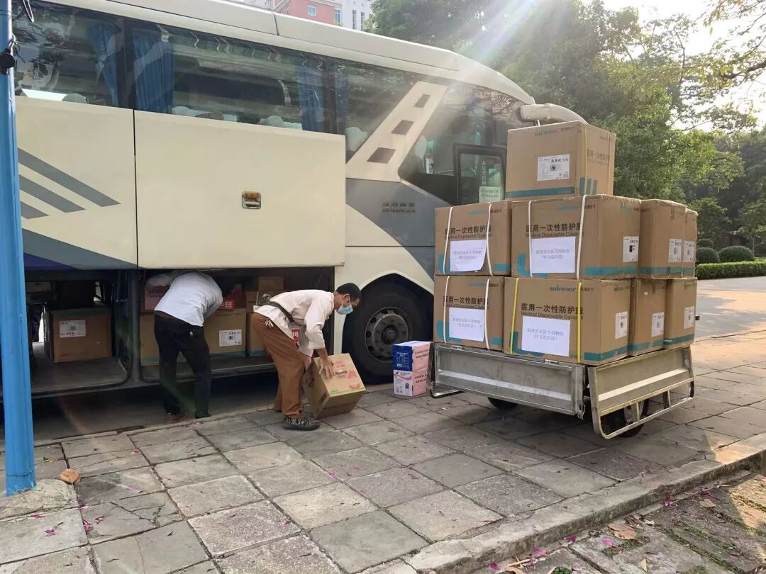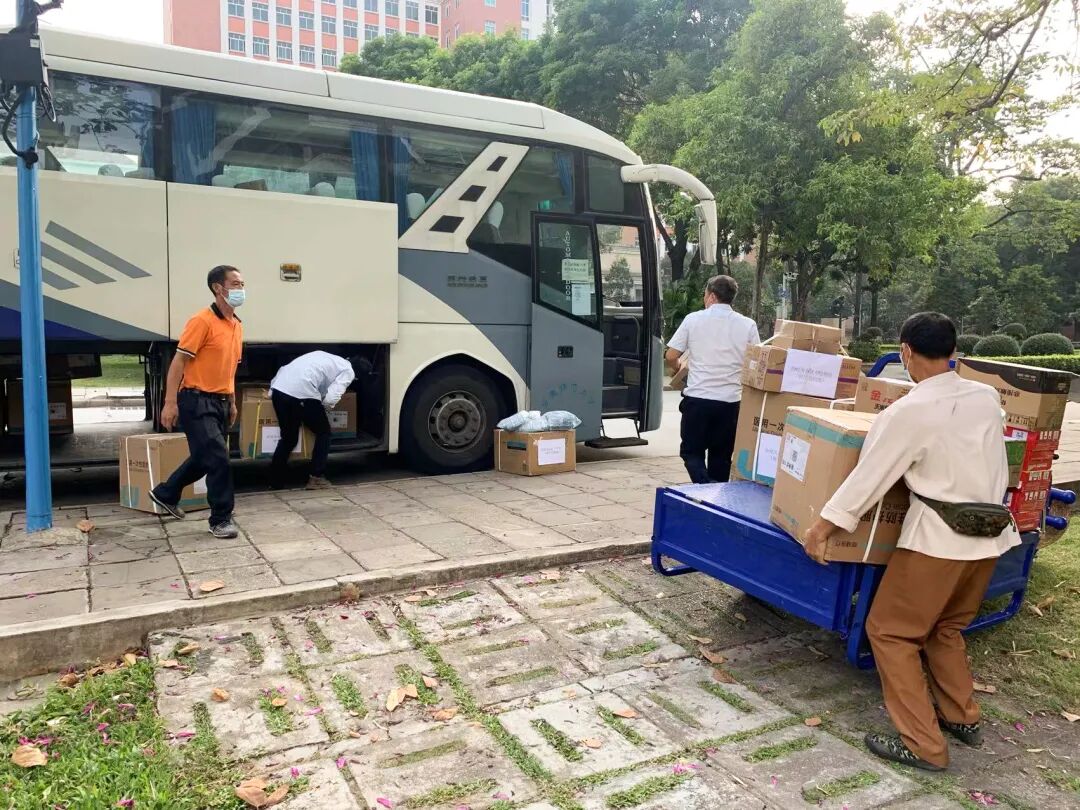交通客运服务中心与时间赛跑,分秒必争,多名司机有序分批从石牌校区运送防疫物资和支援人员到大学城校园,司机们用自己的奔波换来大学城校园师生的安全与安心。
