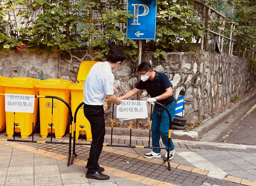 接到命令,后勤人马上做好相关楼栋的封闭式管理,连夜配合属地防疫部门做好流调工作及各类数据收集整理工作,组织接收、分发和管理防疫物资。