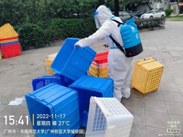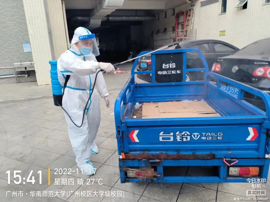 收到属地疾控部门的通知后,后勤迅速组织专业消杀服务公司开展防疫消杀。对阳性病例和密接者转运时的校内行动轨迹进行沿路消杀,对涉疫场所如超市、室外上课地点等进行专业消毒消杀。