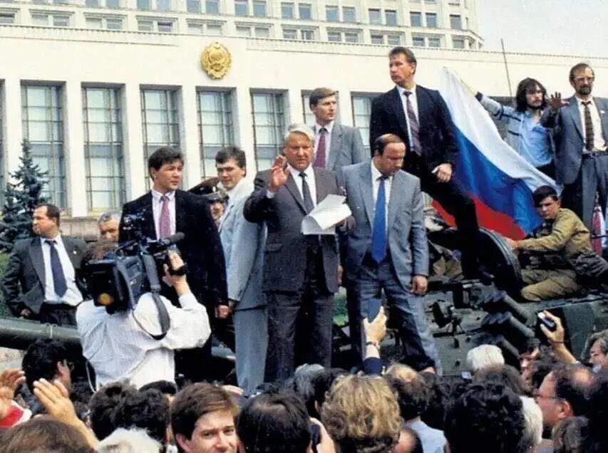 站在坦克上演说的叶利钦 图源网络