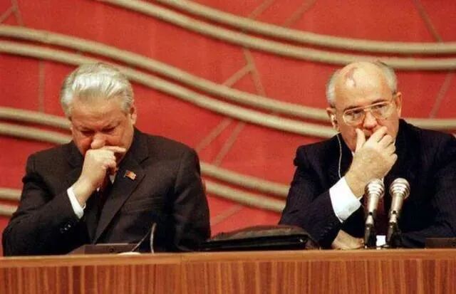 叶利钦(左)与戈尔巴乔夫(右) 图源网络