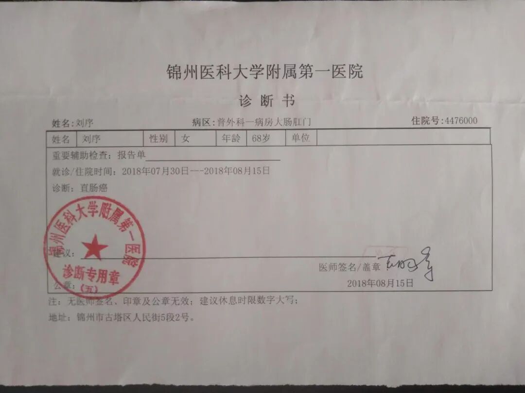 随后,我去找胡医生签手术同意书。他告诉我,“你母亲的肿瘤距离肛门只有9厘米,不知道能不能保住肛门,你提前想好办法,安抚好病人。”