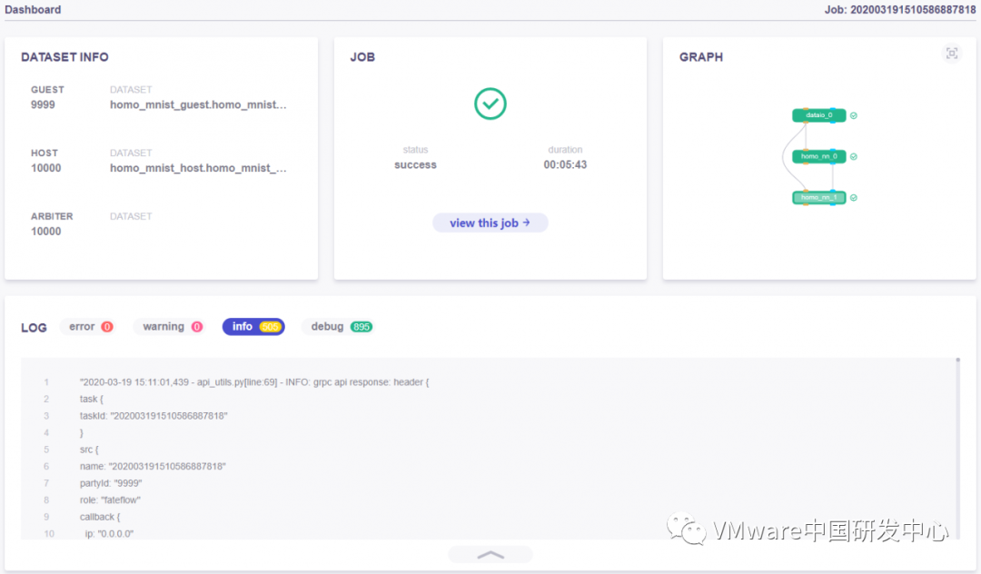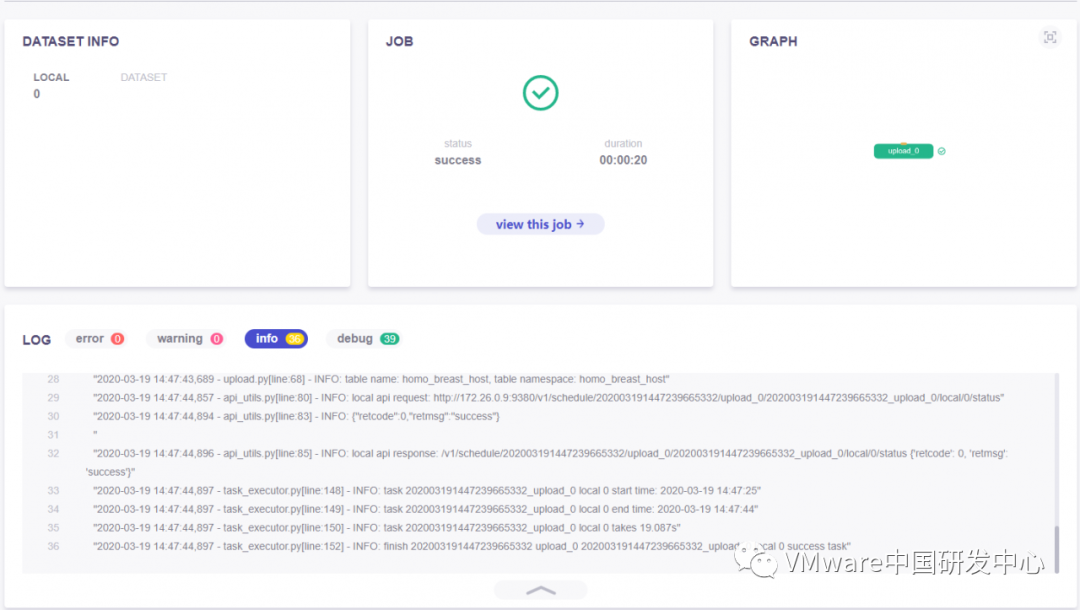 登录到FateBoard可以查看上传任务情况,FateBoard的地址是http://party-IP:8080,如下图所示为成功: