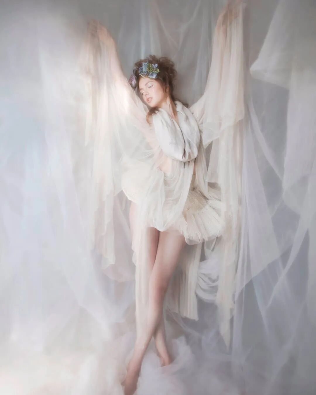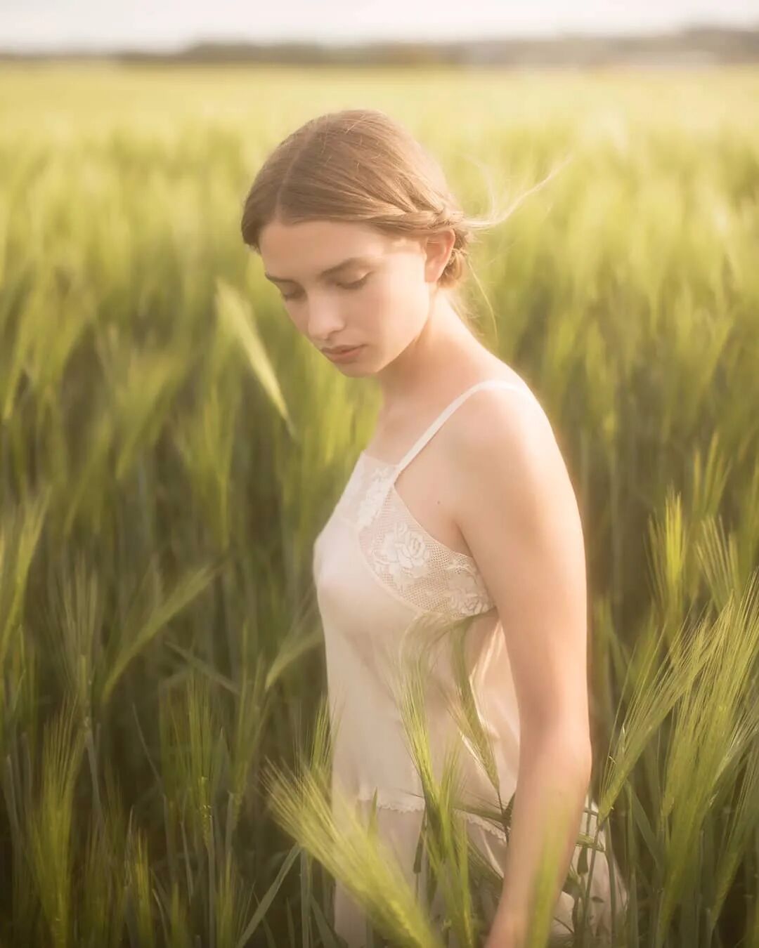 他的作品中充满了朦胧的美感,好似西方古典油画一般,精美无比。披着薄纱的少女们,纯洁无瑕,她们在阳光下、森林里、田园中、湖水旁慵懒闲适地享受着生活,少女们身上细腻柔美的古典气质也被 Vivienne.mok 发挥到极致。自然光线和裸色色调的运用,使她镜头下的女人既性感又娇柔,不由得让你的呼吸也小心翼翼起来,不愿打破她们的宁静,想要守护这样的美好。