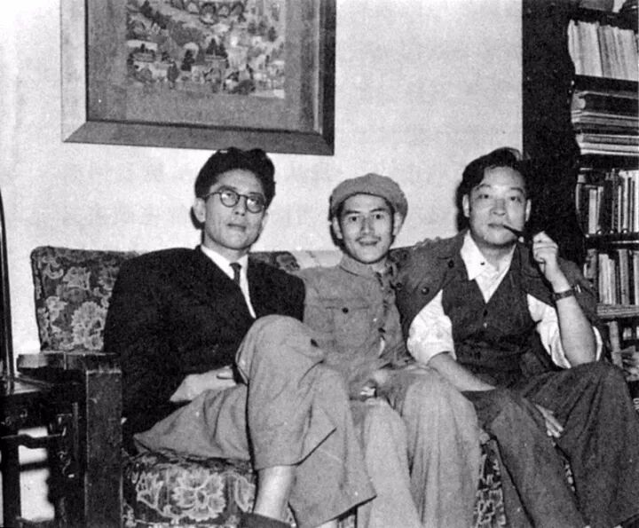 1950年代三剑客。左起乔冠华、徐迟、冯亦代