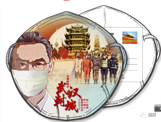 2020年4月7日(世界卫生日),北京邮政推出《战疫英雄》口罩形邮资明信片8枚/套。设计创意新颖(口罩为设计原型),特征鲜明,明信片可折叠成口罩形,实属国内外邮资片发行史首创。邮资图为天安门,面值0.80元,加盖相关纪念邮戳。明信片内容分别为:1.战疫英雄;2.武汉封城;3.八方驰援;4.勇者逆行;5.党员先锋;6.火(雷)神山;7.全民抗疫;8.生命方舱。![]()