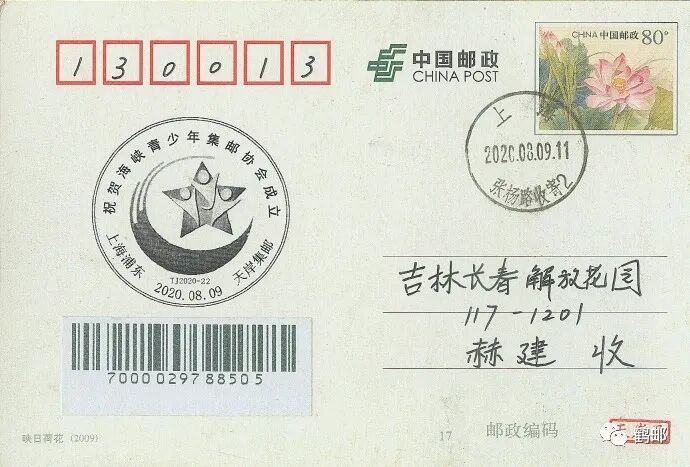 寄自我国最东邮局的戳片