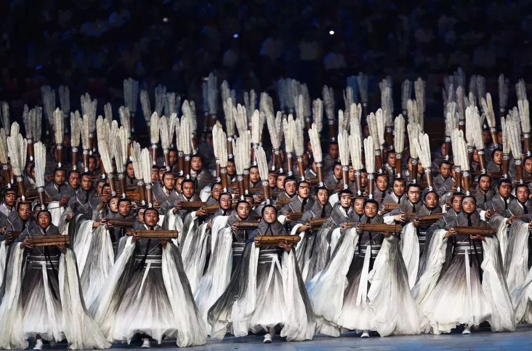 897名演员步调一致的表演,从书简、击缶到活字,虽然动作舒缓,程式化,但是,那种千人的整齐划一,让人感到一种震撼的压迫感,甚至是被碾压的恐惧感。