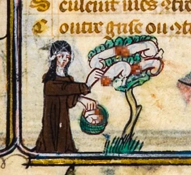 据说女巫偷男性生殖器,并把它们当作宠物,把它们放在巢里喂养。实际上,这个传说是基于“缩阳症”这种焦虑反应,病人突然觉得他们的一些器官消失。
