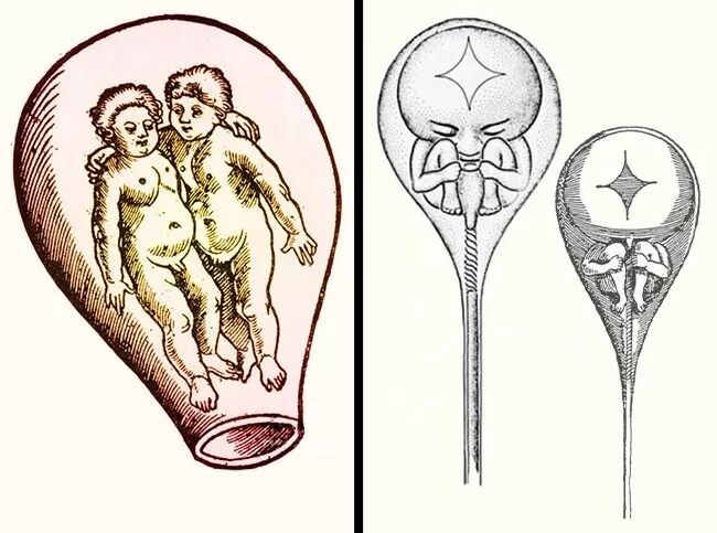 在十七世纪,人们真的这样想。他们以为每个婴儿最初都已成型,剩下的就是长大,女性只被视为“孵化器”。后来又有人认为生命的起源在女性身体的某个地方,男性精子的工作就是唤醒生命。