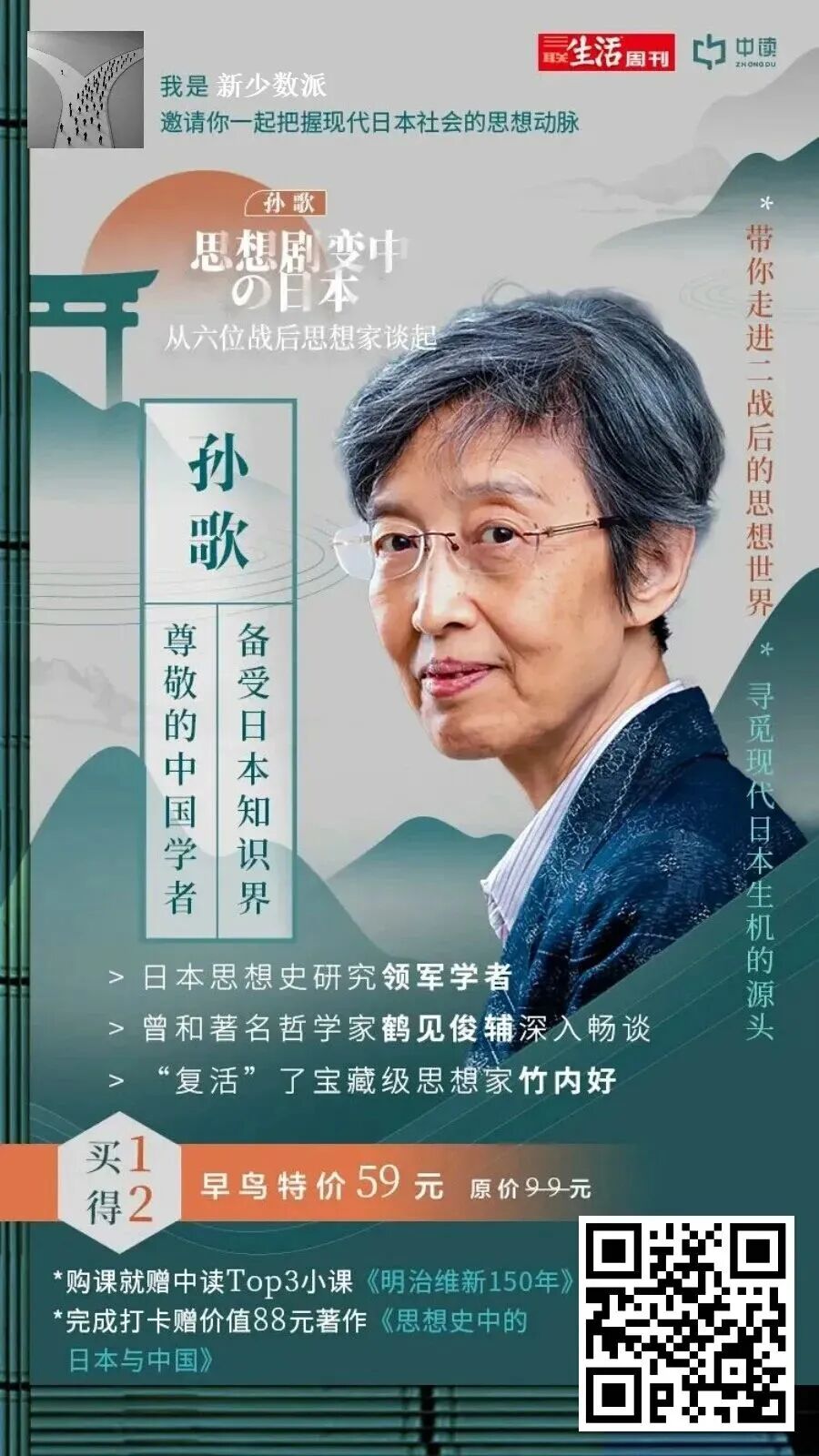 战后日本思想有许多一针见血的剖析,这门课会带你看见日本鲜为人知的另一面,更深刻地理解日本。缺乏自我,崇尚西方强权,黑暗的军国主义道路.......这些都是日本的民族病症,这门课会带你深入解读,看思想家们如何对症下药。困境之下,人们该如何寻找新的出路?这门课会带你了解思想家们的心路历程,寻找更深层次的精神共鸣。↓ ↓ ↓ 点击【阅读原文】订阅《孙歌·思想剧变中的日本——从六位战后思想家谈起》