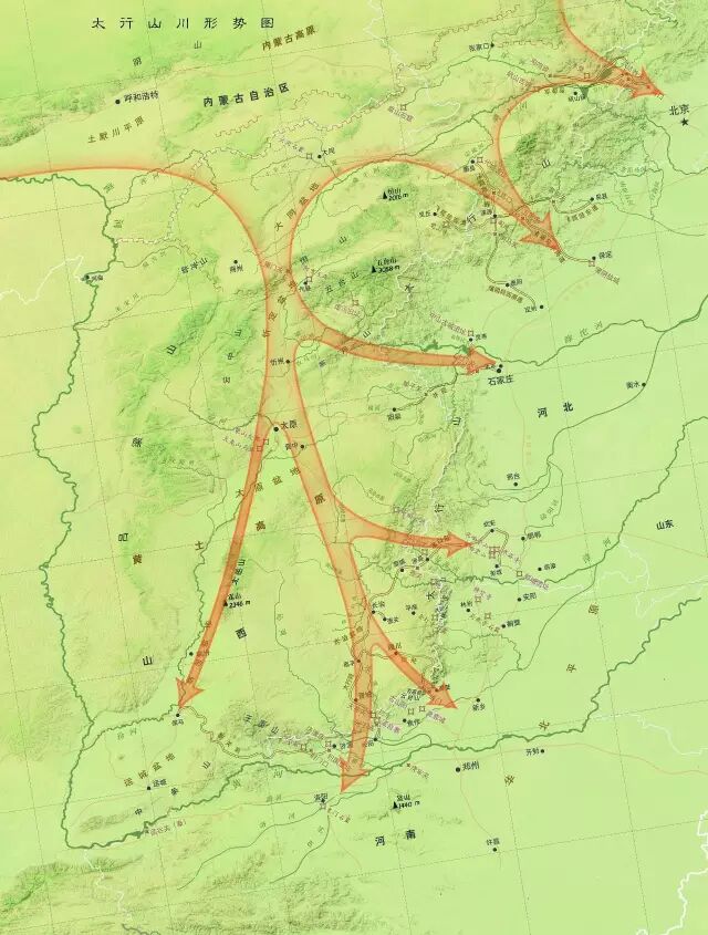 山西四面有山,貌似与世隔绝,其实它离安阳、邯郸、邺城、洛阳等山外的古代中心都市都不远,犹如它们的后方。太行两侧的关系,比想象的要密切。这是八陉的作用。