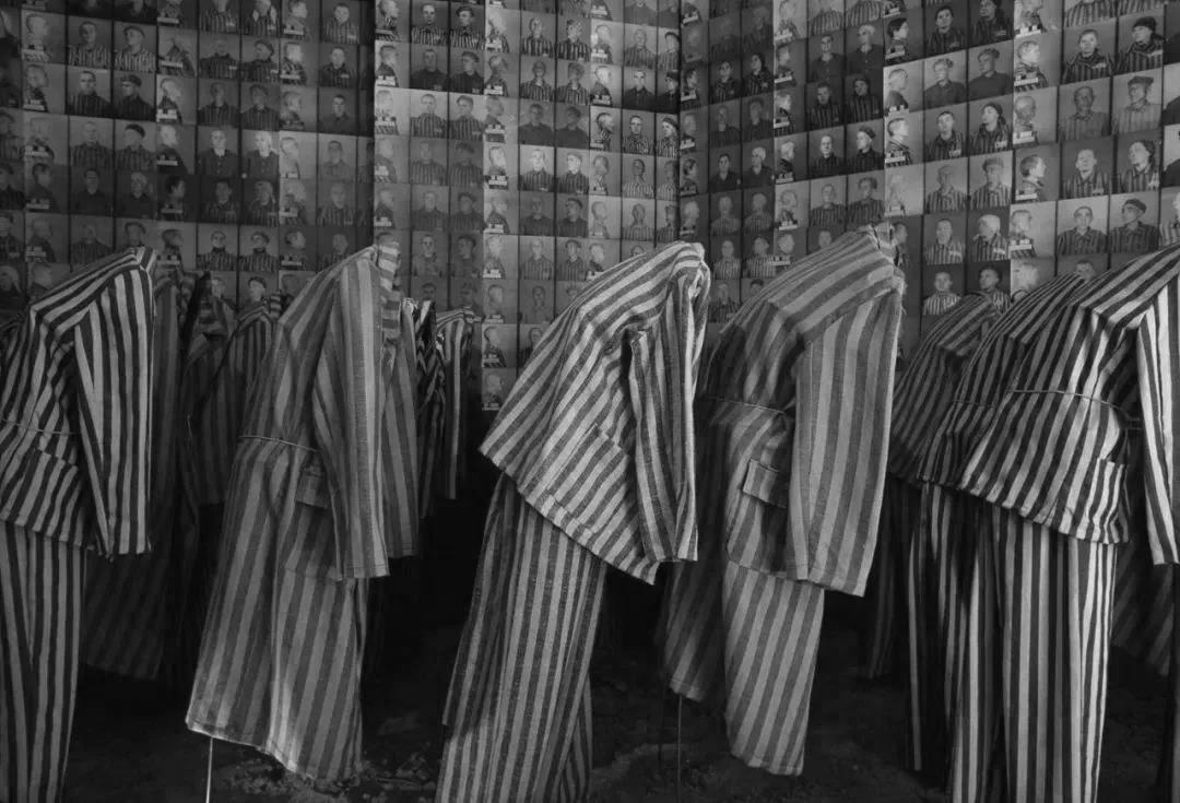 ▲奥斯维辛集中营犯人的照片和囚服
