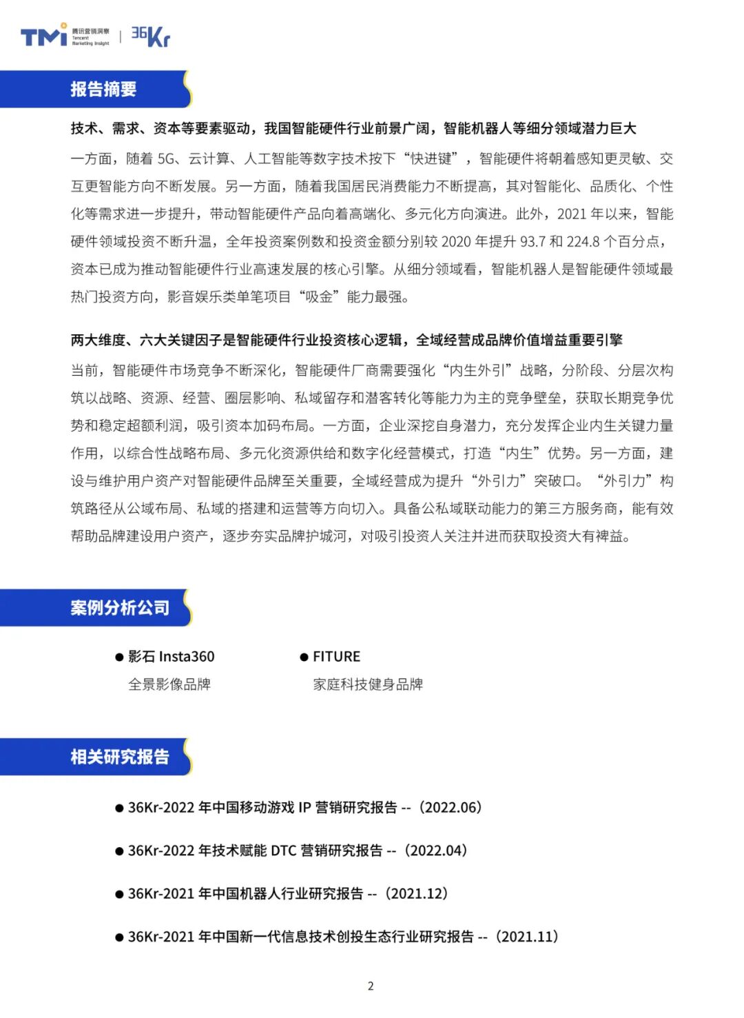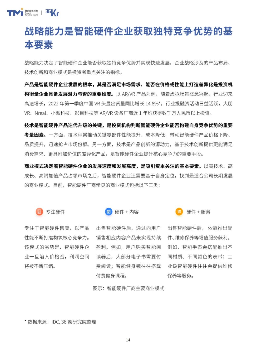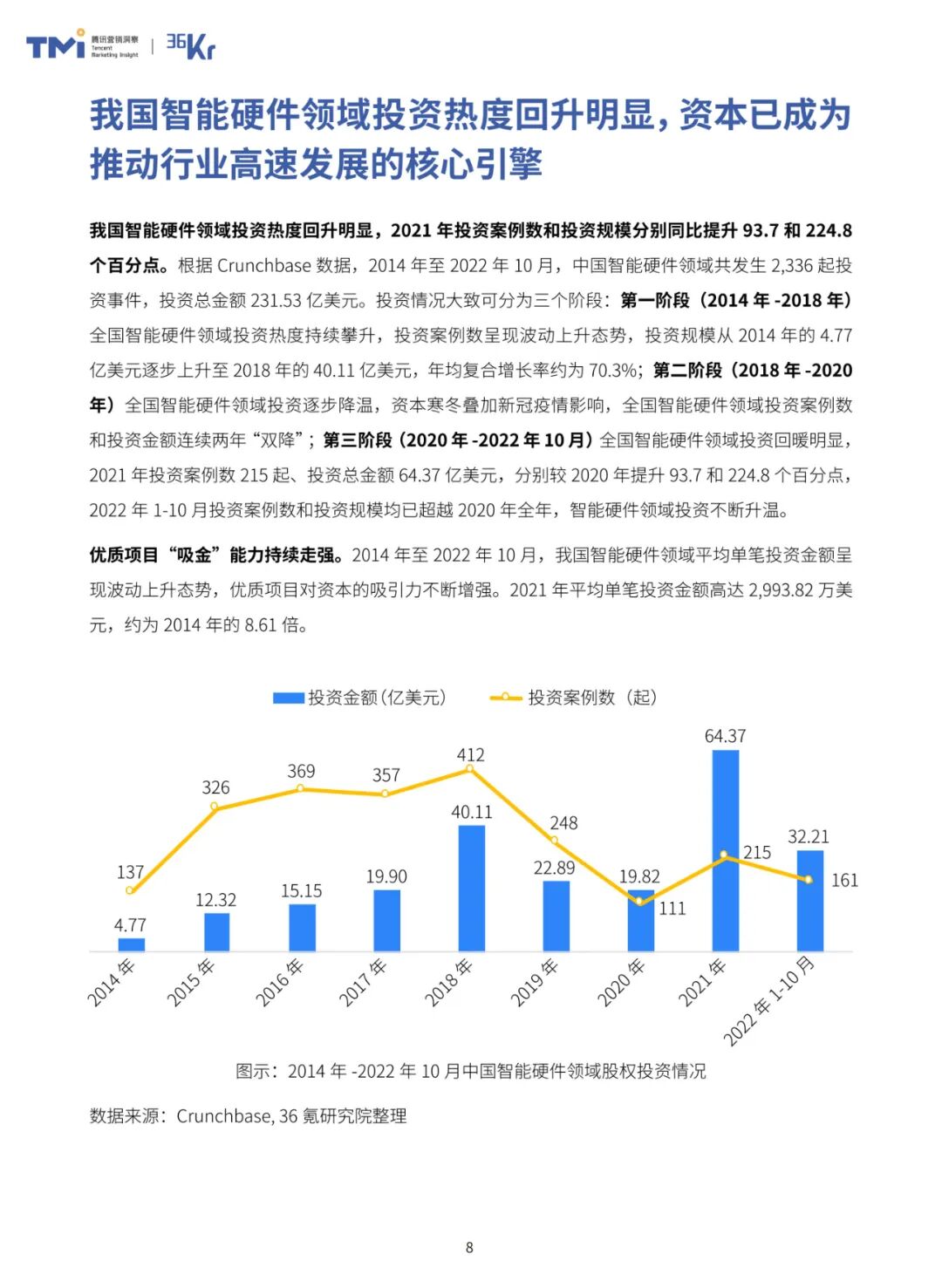 更多精彩内容,请关注“36氪研究院”微信公众号。如想获取《2023年中国智能硬件行业发展与投资报告》,点击文章底部【阅读原文】,提取码:axba,或在36氪研究院微信公众号上回复“智能硬件”获取下载链接。