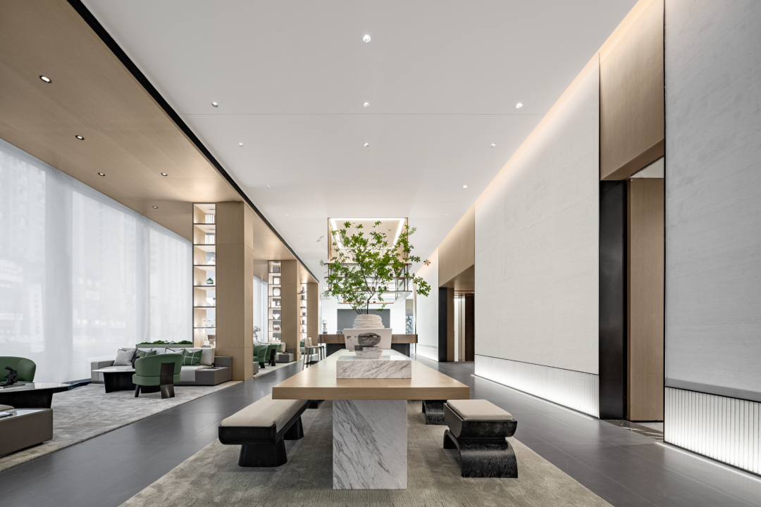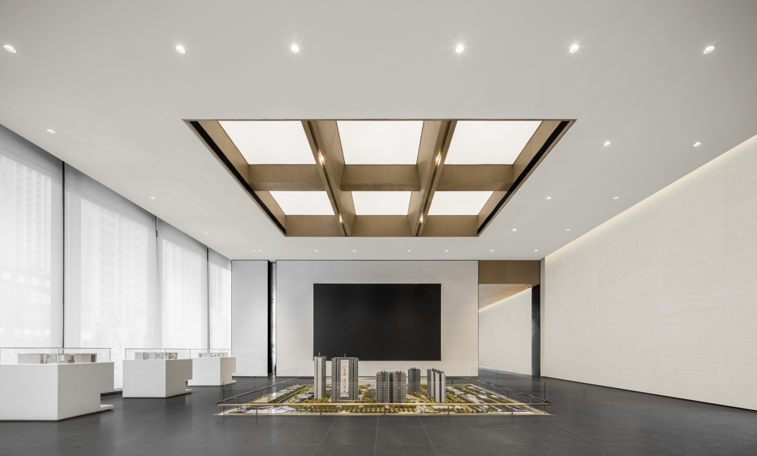 白色的极简主义,代表着一种最纯粹,最干净,最惬意的生活方式。沙盘区无过多地装饰符号,开敞明亮的空间,留给思绪去发散,一切都是那么的不经意,天然去雕琢。
