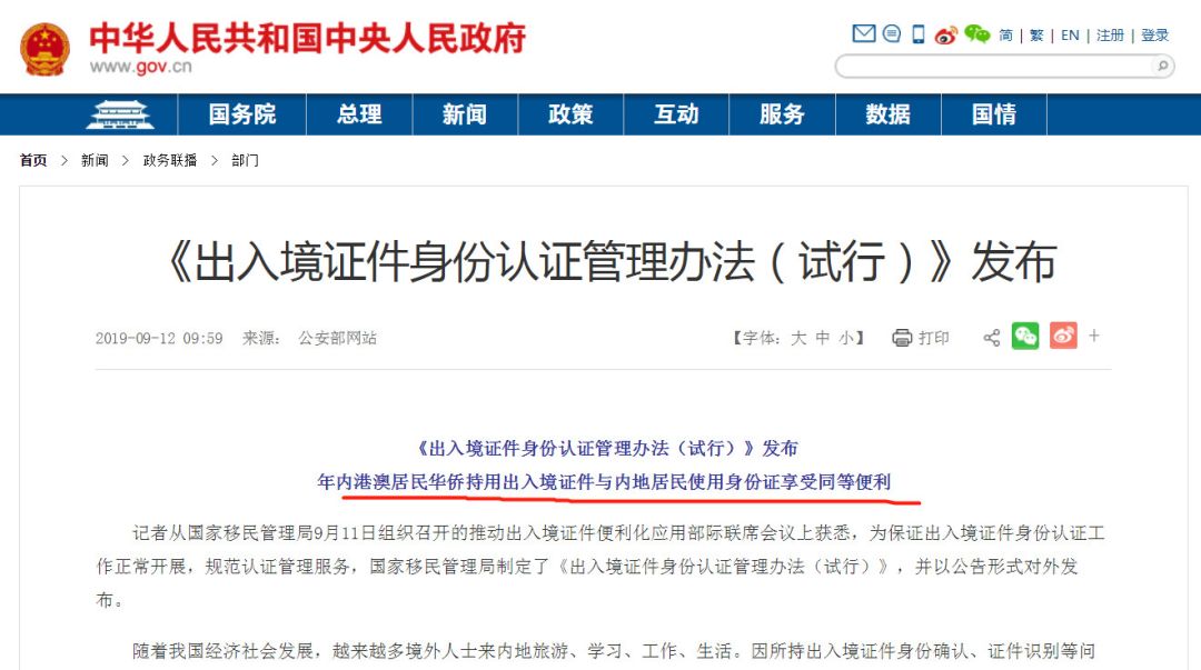 第二个和海外华人华侨相关的利好政策是中国9月11日正式发布并施行的《出入境证件身份认证管理办法(试行)》。