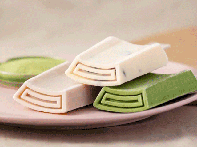 钟薛高采用中式瓦片之型,辅以顶部“回”字花纹,意为“回归”本味。这个夏日,钟薛高将为大家打造一间中式雪糕屋,发起夏日“回”行动!更有神秘周边盲盒、回收可降解秸秆棒签赢礼券,致敬垃圾分类新时尚!