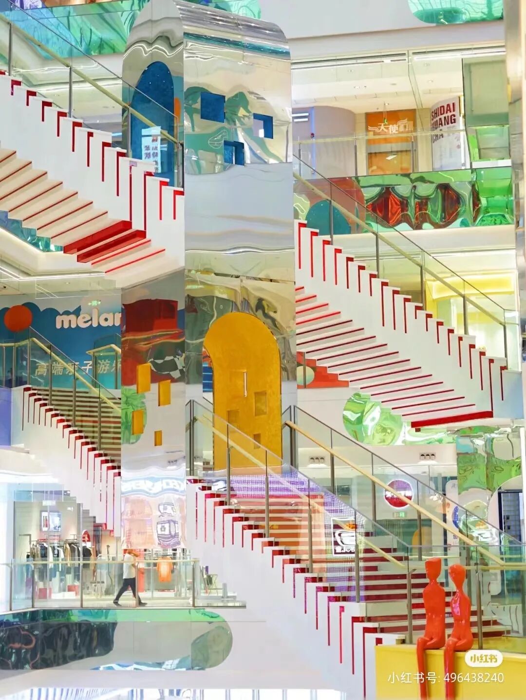 近两年,作为新晋网红打卡点之一的“楼梯/大阶梯”,也在不断融入新玩法,利用颜色、造型等特点,让阶梯变得更加生动。同时一些“剧场式阶梯”又能成为消费者的休憩点,甚至成为营销活动的热门场地,变身商业“流量池”,吸引更多人的停留,这也给空间增添活力和场景体验,延展出新商业价值。