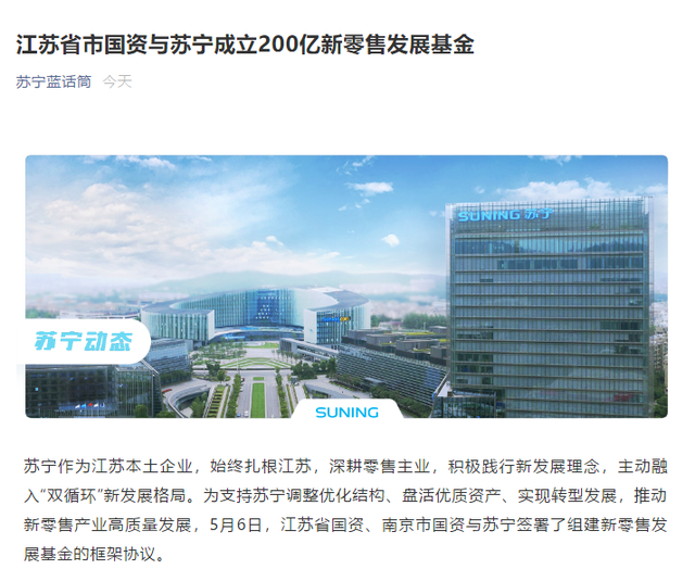 13.江苏国资出手,与苏宁成立200亿新零售发展基金