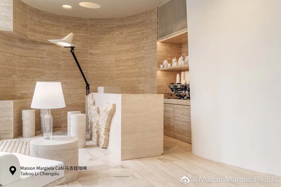Maison Margiela Café设计风格简单,整体以质感米色为主调,穿插简约纯色家居,用实际行动诠释品牌经典的“让不合适变成恰到好处”设计作风。半开放空间,让就餐区得以从室内延伸至室外。门店不远处,还放置有四个超大体量的咖啡杯立柱装置,吸引了众多达人前往打卡。