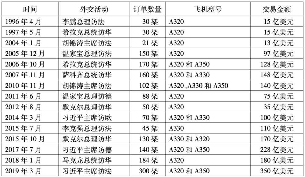 在欧洲国家的“飞机外交”中,中国是最重要的对象,这是因为中国正在成为国际市场上最大的商用飞机买家。20世纪末,空客在全球的市场份额接近50%,但在中国的市场份额仅为30%,中国市场长期是空客全球市场的薄弱环节。因此,“飞机外交”成为欧洲主要国家对华经济外交的重要内容。2006年10月时任法国总统希拉克访问中国,在中法两国领导人的推动和见证下,中方与空客在北京签署了订购150架A320系列飞机的框架协议和订购20架A350宽体飞机的意向书,总价值超过100亿美元,这不仅是空客进入中国市场20年来获得的最大一笔飞机订单,也是当时中国民航史上签署的最大一笔飞机订单。这次外交访问还达成了另一项重要的合作协议,空客与中国相关方签署了在天津共建A320系列飞机总装生产线的协议,这是当时空客在欧洲以外的第一条生产线,不仅是中欧民航工业合作的重大成就,也是中欧加强战略伙伴关系的重要合作项目,希拉克称之为中欧的“战略联姻”,而他本人也因此获得了空客“超级推销员”的称号。