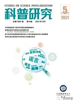 《科普研究》是由中国科学技术协会主管、中国科普研究所主办的专业学术期刊,自2006 年正式出版发行以来,主要刊载科学普及领域的理论和实践研究成果,现为中文核心期刊、中国人文社会科学期刊A 刊核心期刊、RCCSE 中国核心学术期刊。本刊以“促进科普理论研究,推动科普事业发展”为宗旨,力推学术精品力作,持续致力于促进科普学术繁荣和科普事业高质量发展。