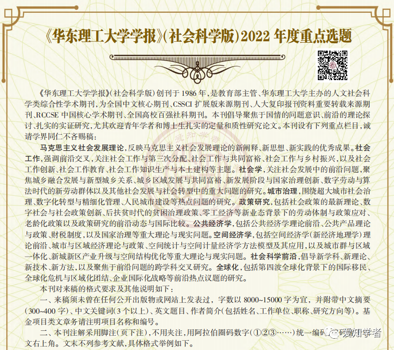 《华东理工大学学报(社会科学版)》2022年度重点选题