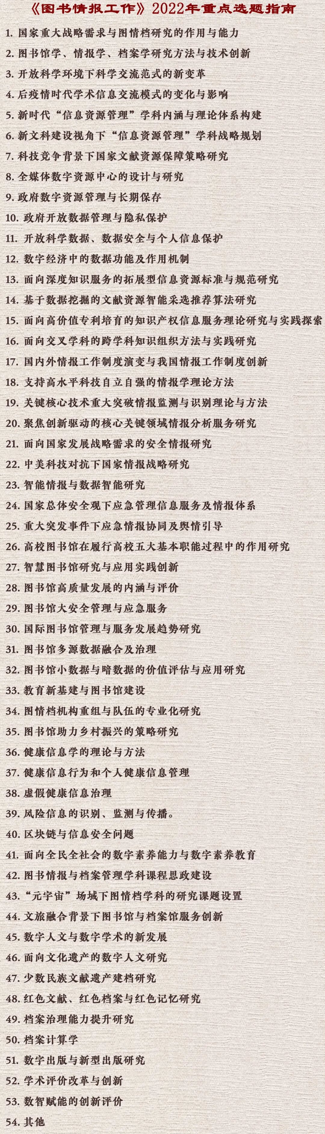 《图书情报工作》2022年重点选题指南