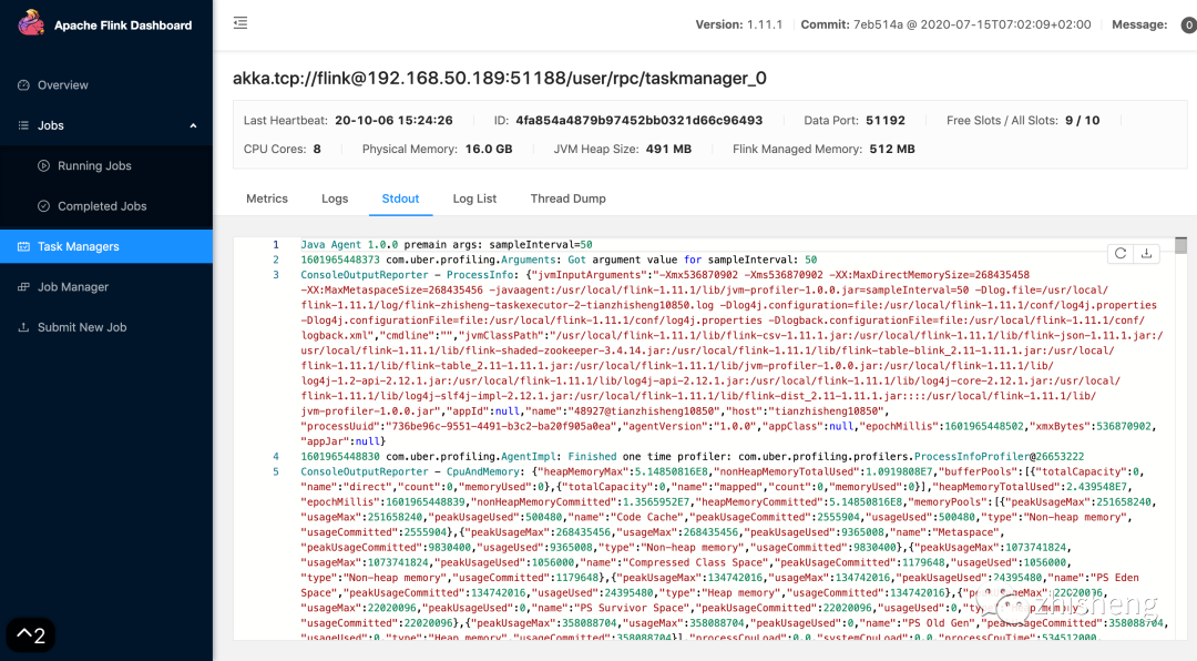 env.java.opts.taskmanager: "-javaagent:/usr/local/flink-1.11.1/lib/jvm-profiler-1.0.0.jar=sampleInterval=50"