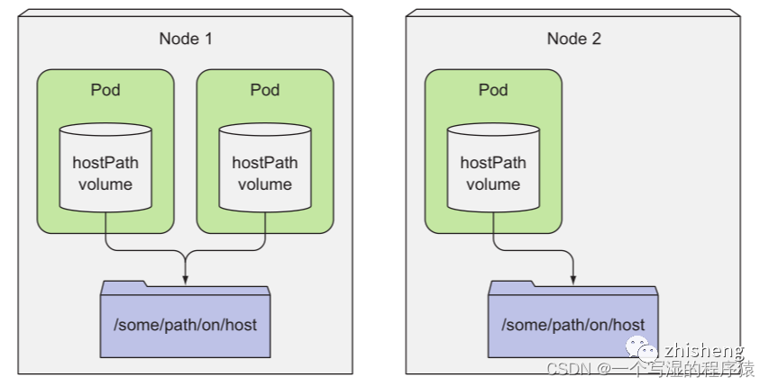 Hostpath:将宿主机上已存在的目录或文件挂载到容器内部。类似于docker中的bind mount挂载方式。这种数据持久化方式,运用场景不多,因为它增加了pod与节点之间的耦合。