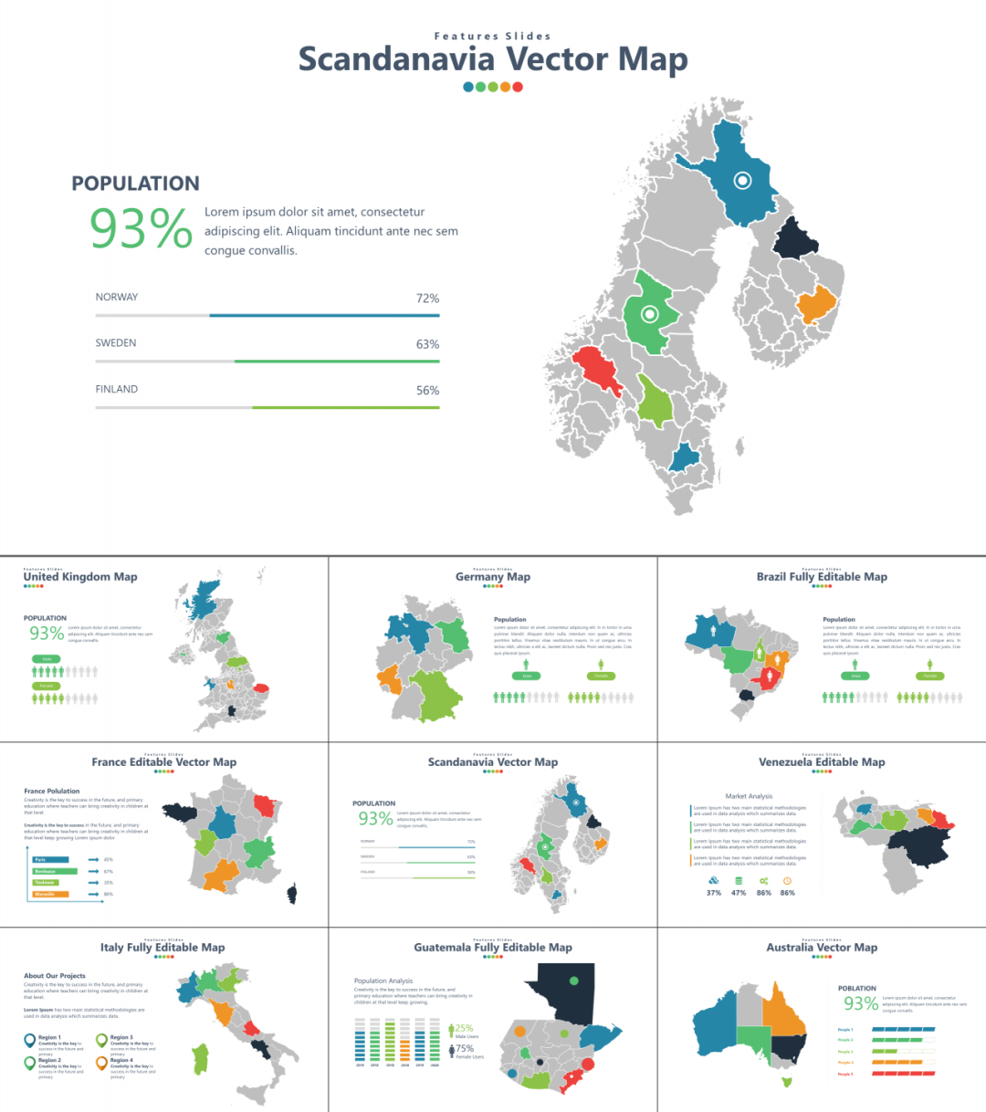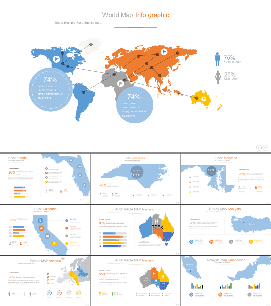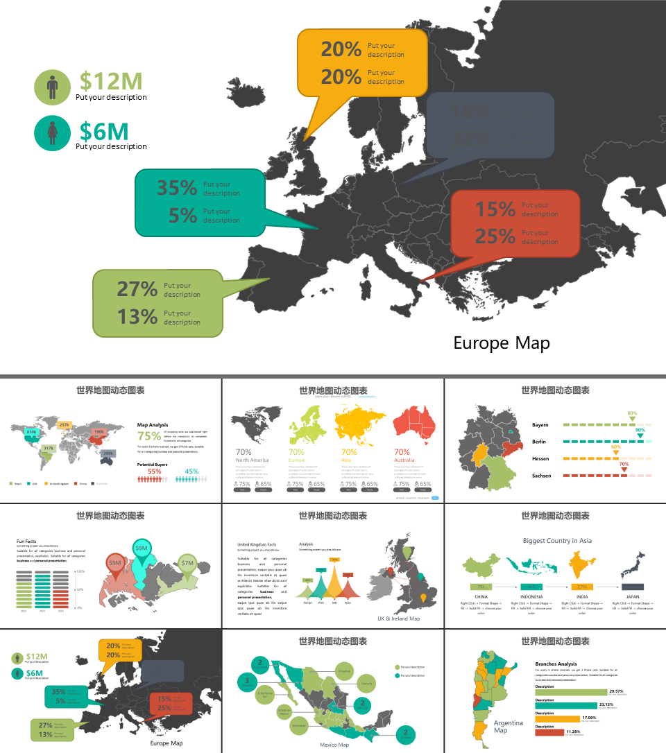 这是我目前见过最全的一份地图图表类型的PPT模板了