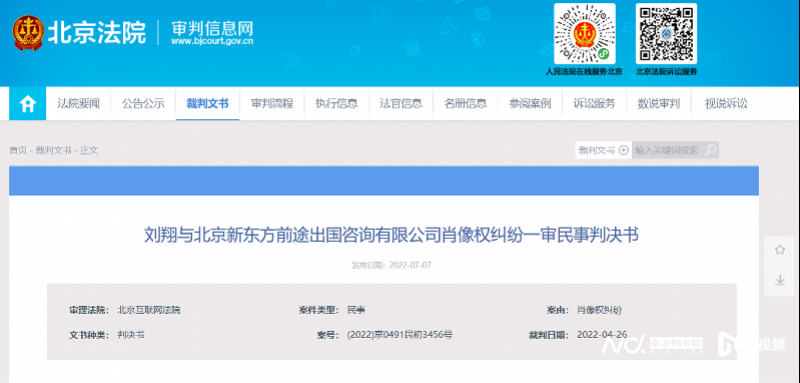 据一审民事判决书显示,未经刘翔允许,北京新东方前途出国咨询有限公司于2016年8月9日在微信公众号“新东方美国中学留学”发布的《从8年前的刘翔到今年的傅园慧,中国这才真正强大起来》一文中,使用肖像,并附商业宣传信息。