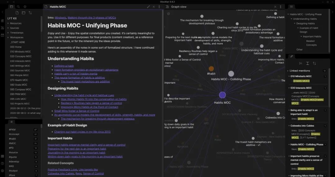 首先,在Obsidian中保存的内容,不再是单一的笔记,而是一个庞大的笔记网络。