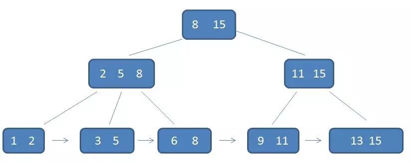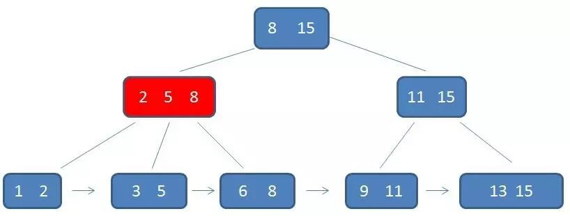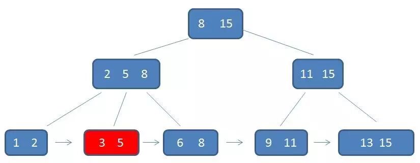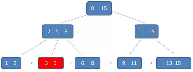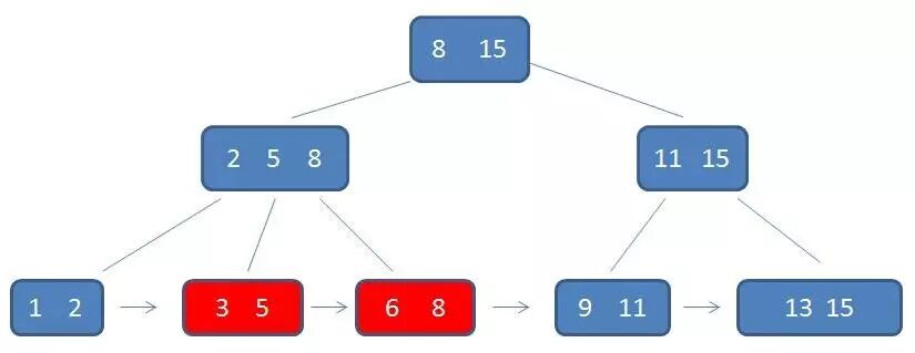 3.每一个叶子节点都包含k-1个元素,其中 m/2 <= k <= m