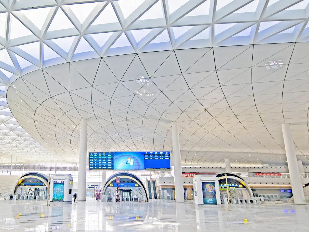 据杭州交投公众号:杭州西站站房总规模11台20线,总建筑面积约51万平方米,累计完成总投资的73%,站房装饰装修已完成99%,目前正开展各项系统调试。