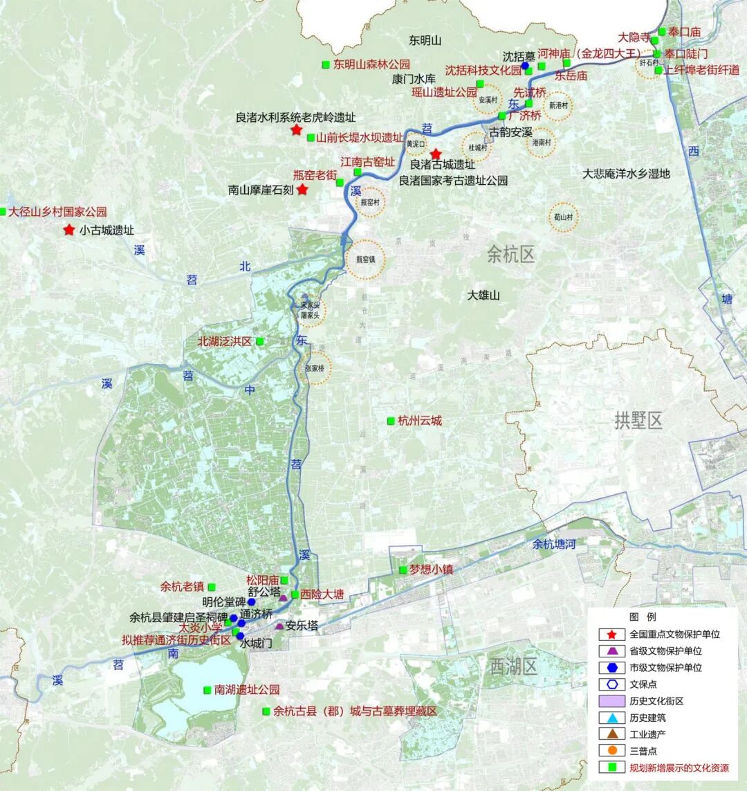 余杭区范围内东苕溪、余杭塘河沿线文化资源分布图