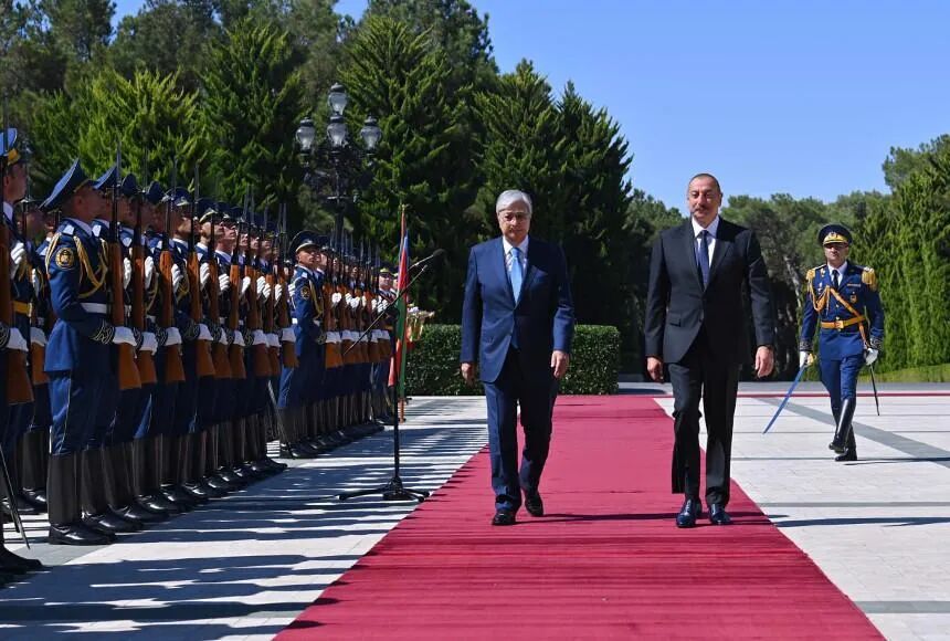 哈萨克斯坦总统托卡耶夫24日抵达阿塞拜疆首都巴库,并与该国总统阿利耶夫举行了会晤。阿利耶夫在其总统官邸前为托卡耶夫的访问举行了隆重的欢迎仪式。>>>视频 | 阿塞拜疆隆重欢迎托卡耶夫到访