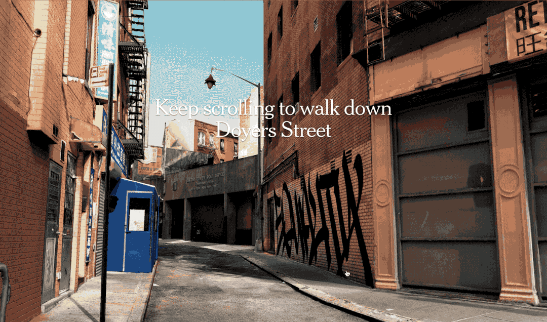 ►简评:曼哈顿的唐人街是中国文化在纽约的起源,它从一个贫民窟开始,逐渐发展壮大,成为支持华人和反对种族歧视的保护屏障。这个项目运用了摄影测量的技术,将 4447 张照片转化成唐人街的 3D 模型。通过将旧照片和历史故事相结合,作者为读者提供了沉浸般的交互体验,使他们身临其境,在漫步唐人街的过程中了解社区的发展历史。