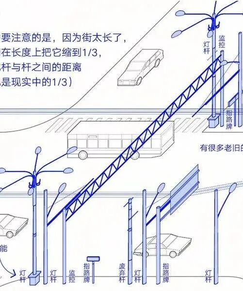 ►简评:路边的电线杆是城市发展的记录者。阜内大街未改造前,短短 600 米街道遍布了 183 根功能、所属单位、留存状态各不相同的电线杆。2017 年秋天,阜内大街完成改造,沿街的 183 根电线杆被减少到了 55 根。从电线杆的改造我们就能管中窥豹地发现,参与一条街的建造、设计、管理所涉及到的工作单位、体系非常庞大。城市建造永远都不会只是一个结果,而是一个持续过程。