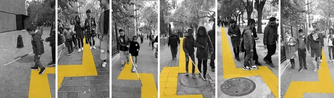 ►简评:不友好的街道不只是影响了视障群体的出行,也反映了城市包容性和活力的欠缺。作者将“盲道步行挑战”中的数据可视化,揭示了现在盲道存在的距离长、转向多、道路偏移、路障多等各类问题。在视觉上将盲道高亮,我们可以清楚地看到其设计的不友好。将拐杖的摆动可视化,我们也可以明显地感受到盲人行走的不易。