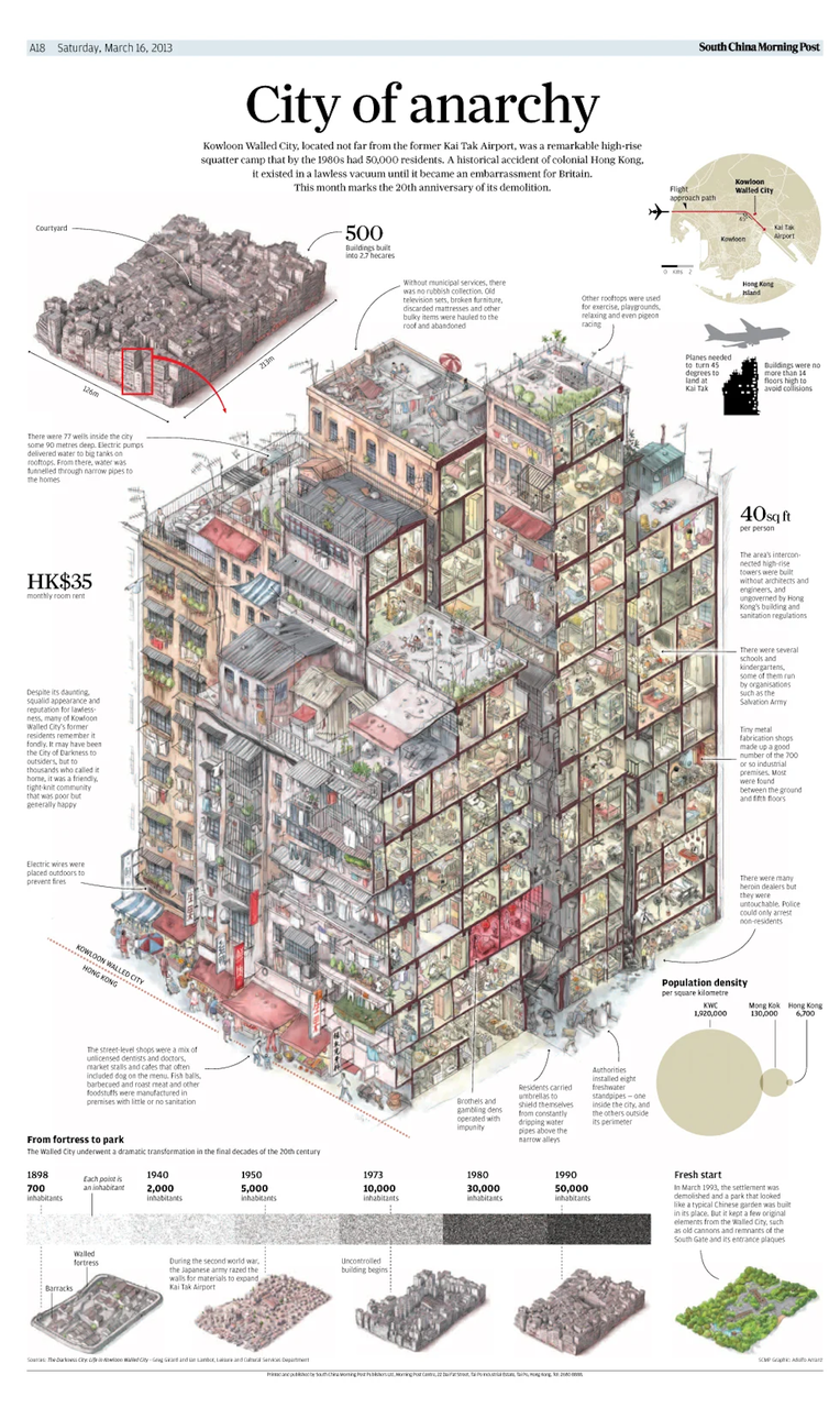 ►简评:九龙寨城曾经是香港的一座“围城”。在仅有约 2.67 万平方米的土地上,它容纳了超过 5 万的居民。在这里,“三不管”的秩序和拥挤的建筑结构超出了人们的想象,充满了传奇色彩,也带给建筑师、艺术家、文学作品和电子游戏不少灵感。在寨城被拆除的 30 年之际,作者通过绘画,介绍了建筑的结构、居民的生活状态、寨城的发展历程,试图还原九龙寨城的真貌,让读者更直接地感受其背后的故事。