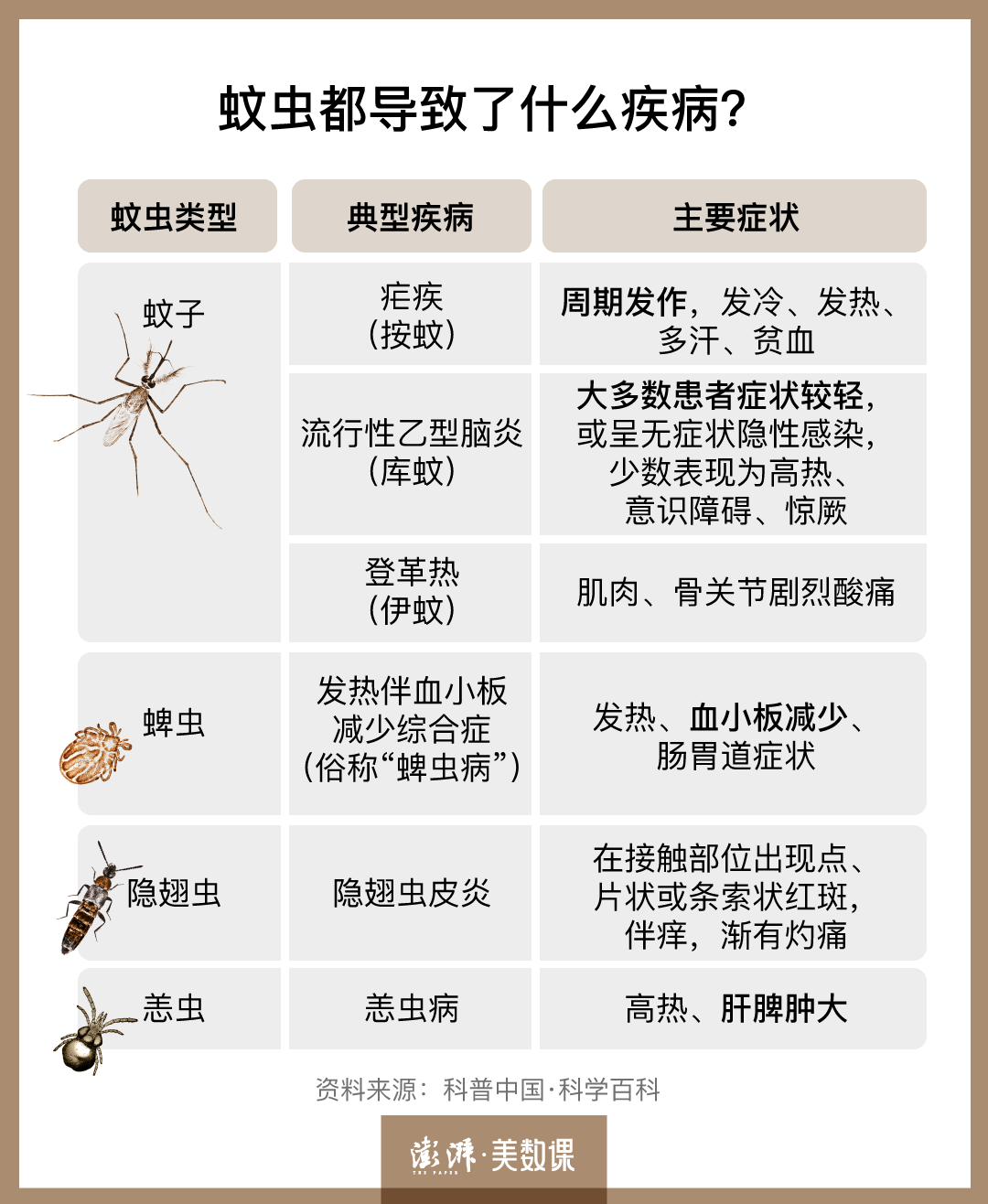 虽然蚊虫经常在人们身边刷存在感,看着心烦,但是对于大多数人来说,和这些小飞虫的交集不过是起了几个隔天就消的蚊子包,但这并不意味着这些随处可见的夏虫不会对人造成伤害。